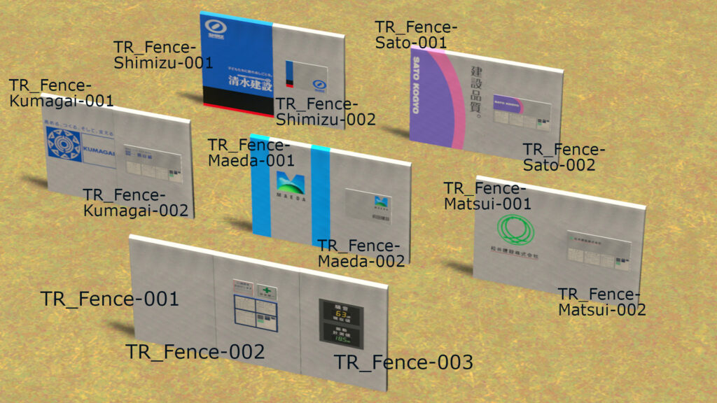 「懐かしの北陸線を目指して」というテーマなので、今回は特に北陸発祥のゼネコン各社、清水建設・佐藤工業・熊谷組・前田建設工業・松井建設の5社を取り上げ、それぞれのロゴ入り仮囲いを作り、ワークショップに公開しました。5社それぞれの特徴についてはWorkshopに簡単な説明を書きましたので、そこに建設される建物をイメージしながら使ってみていただければと思います。